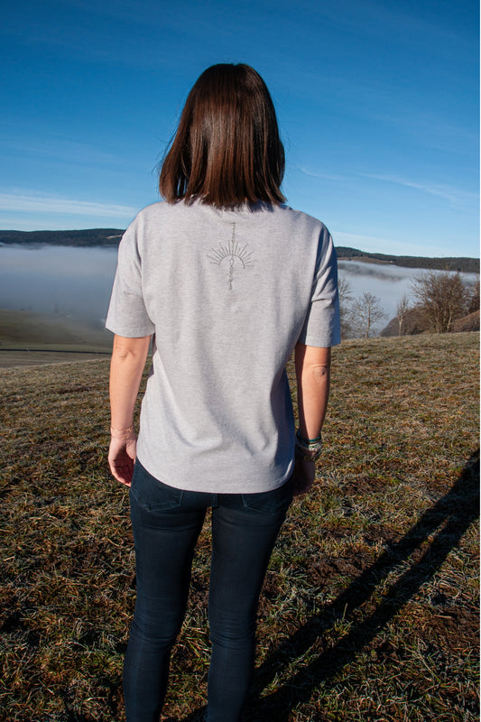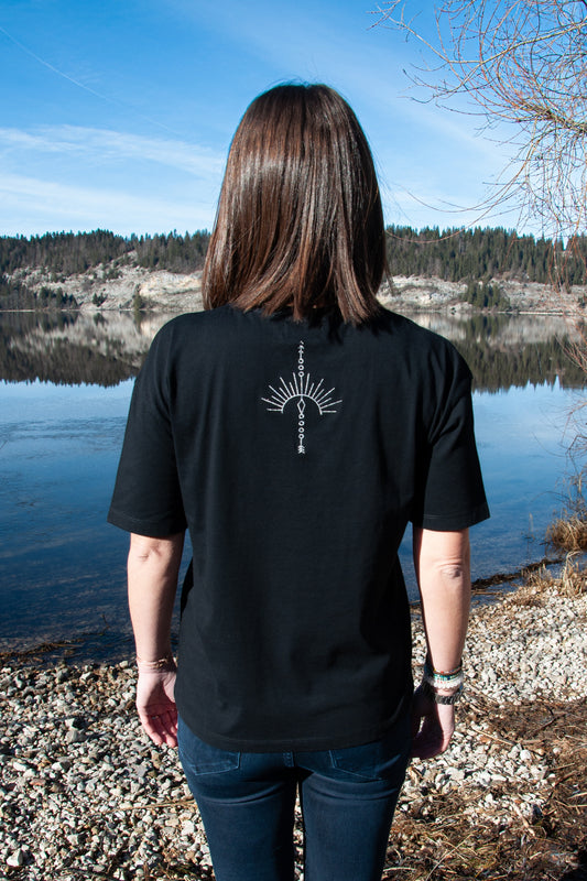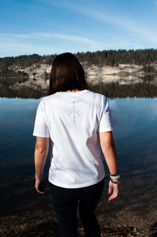 Découvrez notre nouvelle gamme de t-shirts en coton 100% bio avec une broderie étincelante du SW au coeur et notre précieux symbole au dos. Ce dernier, représenté par une flèche, incarne le combat et l'introspection, tandis que le soleil évoque la réussite.